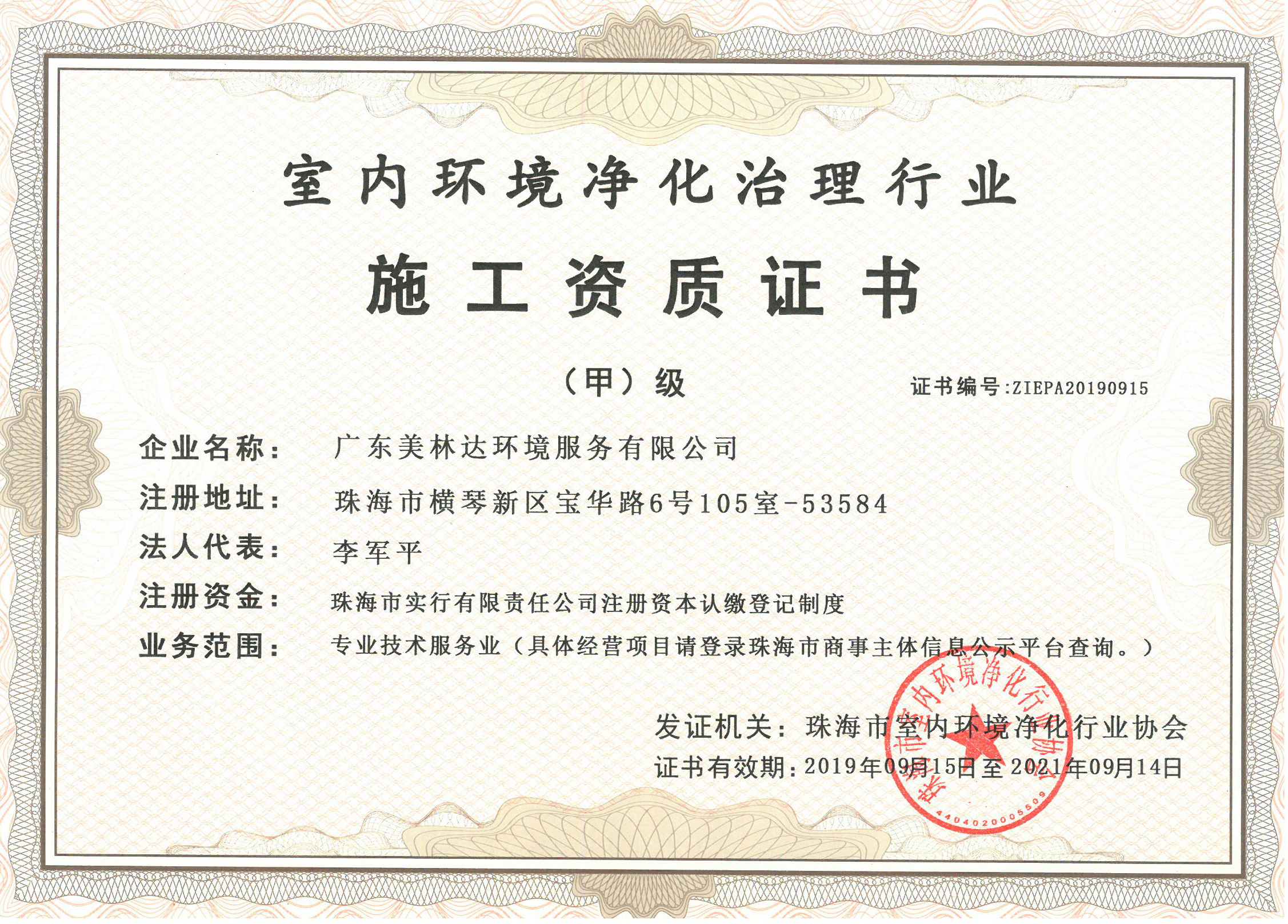 空氣凈化施工資質證書